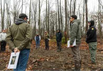 Aurora hosted workshops for natural resource practitioners and landowners in May and November of 2024, allowing participants to tour demonstration sites and learn about bird-friendly forestry, including bird identification, tailored management practices, and resources for connecting with local foresters. Aurora consistently strives to educate neighbors, community groups, and the public about their mission and how they achieve their goals through active management.